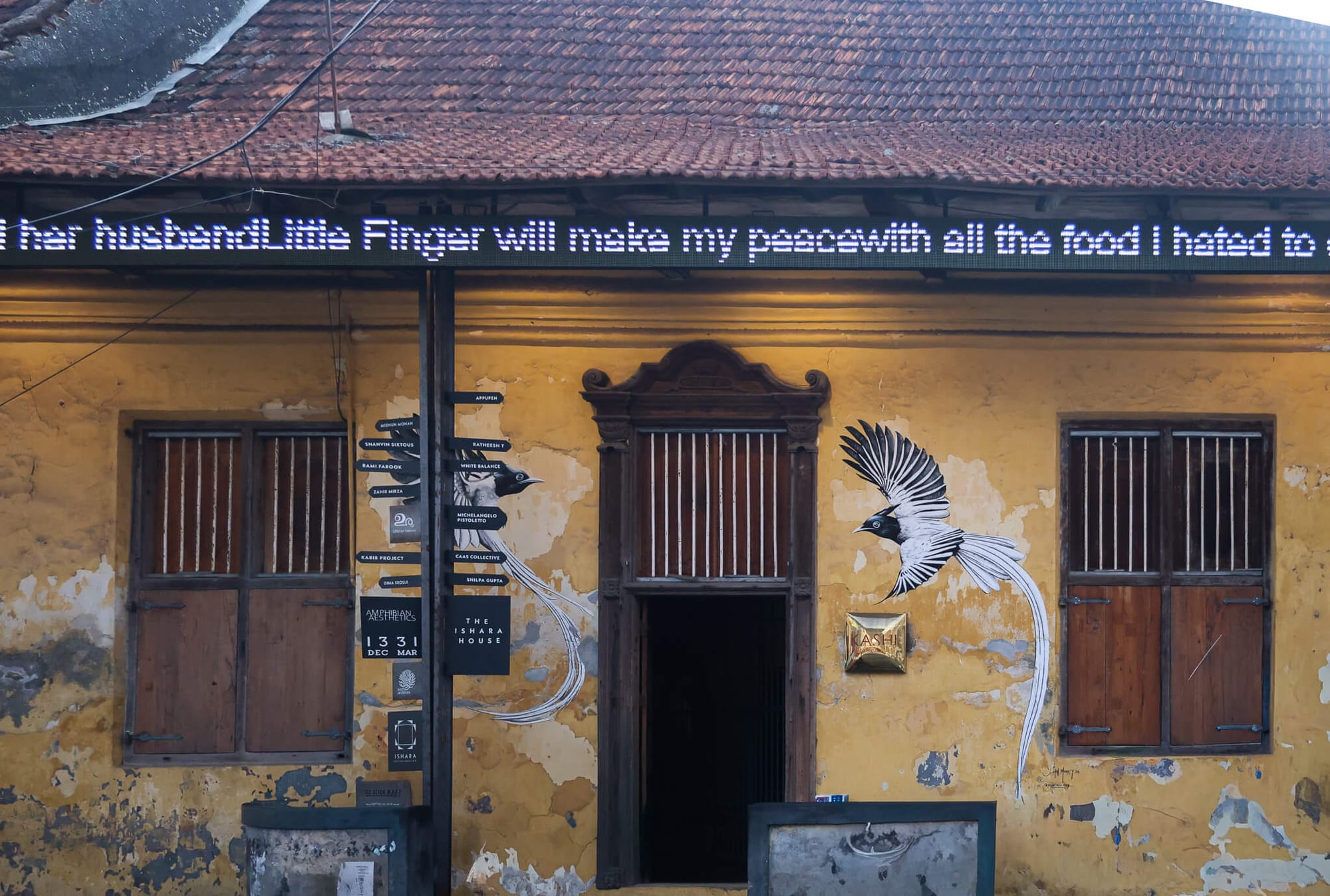 Combine with: This is Jew Town - spice shops, antique dealers, and the Synagogue are all within walking distance. The main Biennale venue at Anand Warehouse is a few minutes away. If you're doing a Mattancherry art day, pair Ishara House with Devassy Jose & Sons and the Anand Warehouse venues.