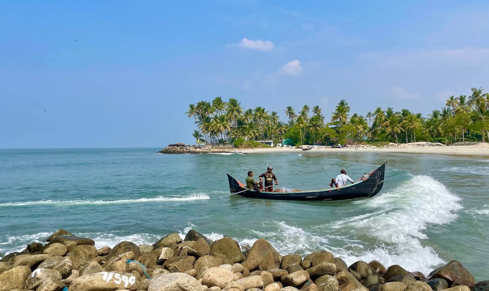 There is no entry fee. There are no crowds. The beach is clean, the sand is fine, and the fishing boats anchored offshore give it the kind of unposed quality that is becoming harder to find on the Kerala coast.