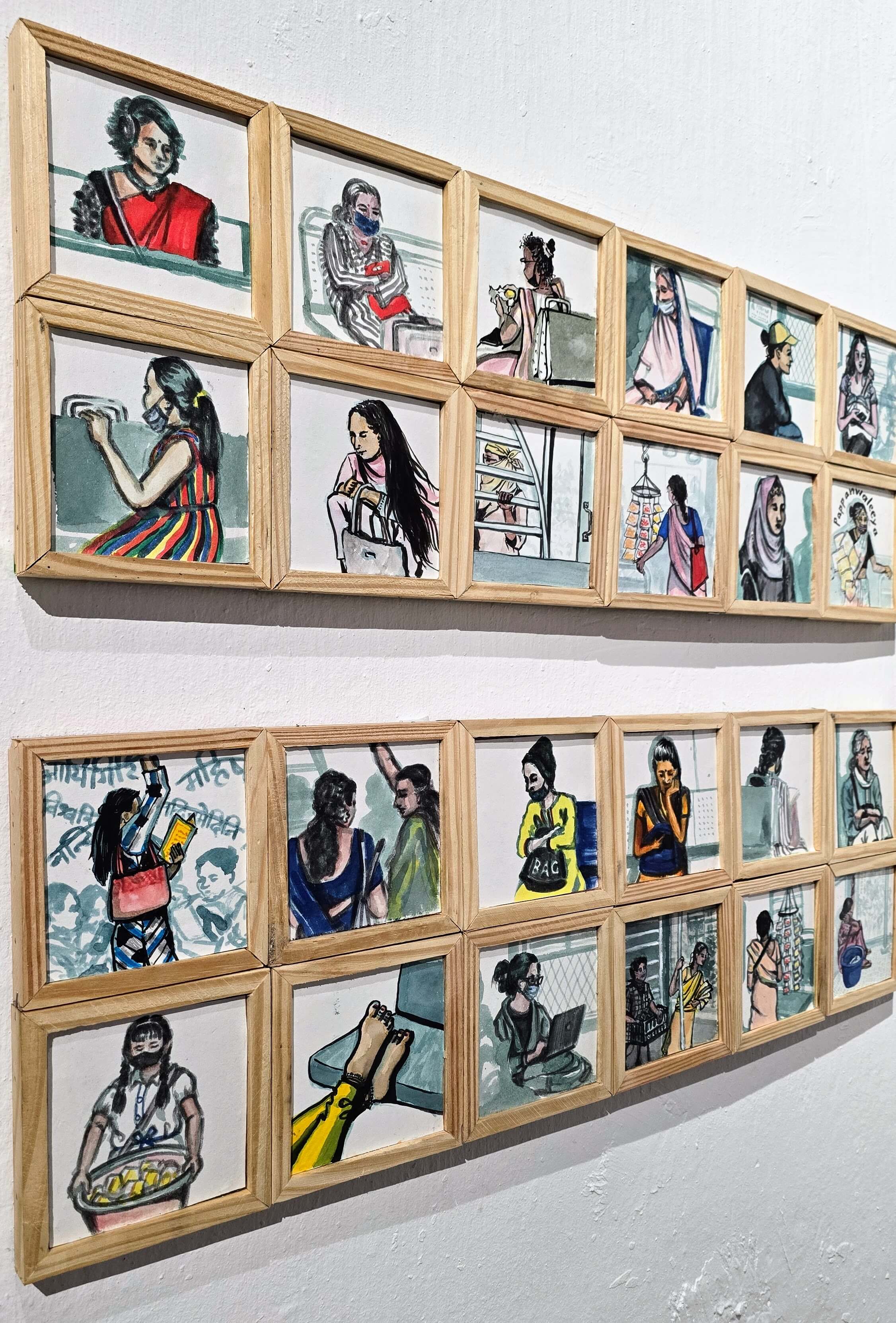 Diya Joseph's work captures women in moments of rest and transit through her sketches. They are an archive of ordinary pauses in public spaces.