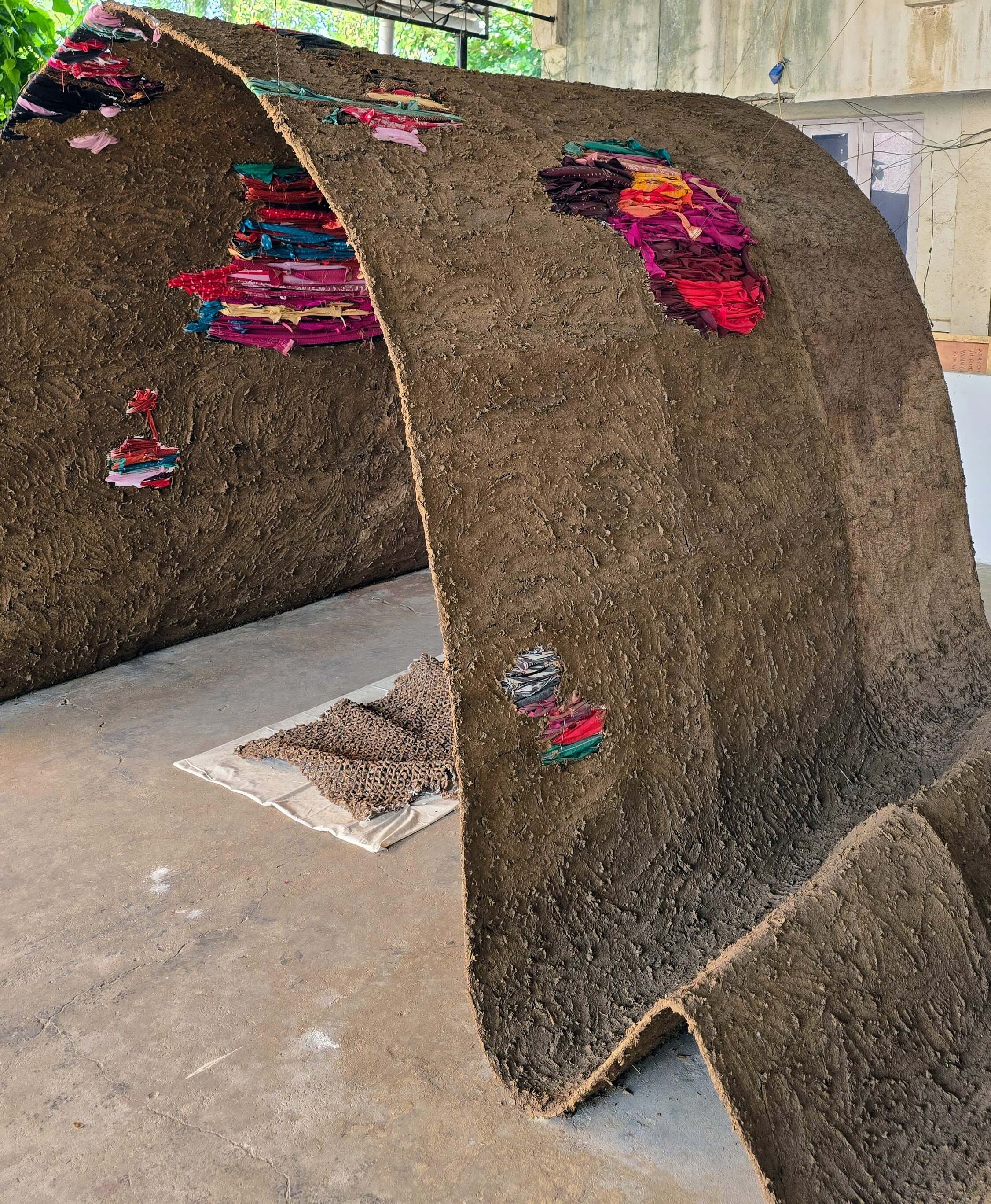 Jyoti blurs the assumed clarity between work and rest, engaging with spheres of discontent—the demands of every day that never quite resolve. In this commissioned work for the Students' Biennale, she invites viewers to enter the dari as passageway.