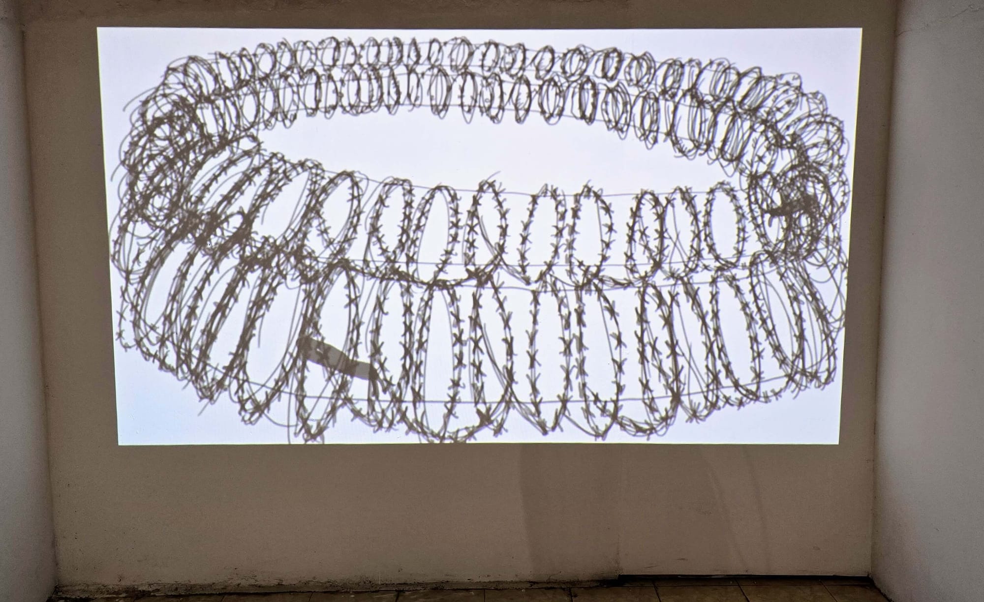 Fish swims through space, jumps on fields, plays in concertina wires, and in army camps. It embodies endurance and resilience amid invasions on its presence, history, and environment.
