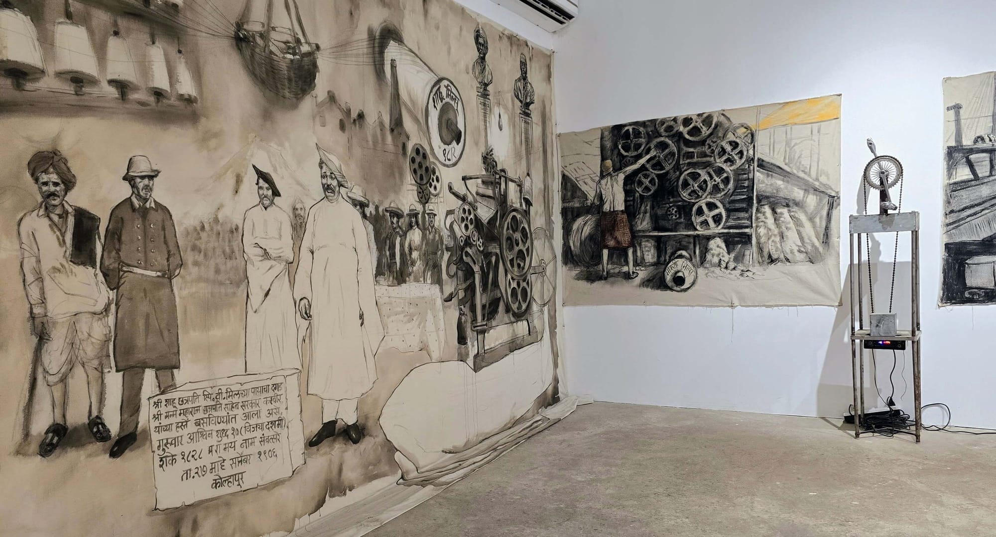 Through textile assemblages, Sachin Banne traces the trajectory of Manjarpat (Manchester cloth) from its imperial roots to its status as a powerhouse export, initiated by Chhatrapati Shahu Maharaj, shaped by the workers who sustain it.