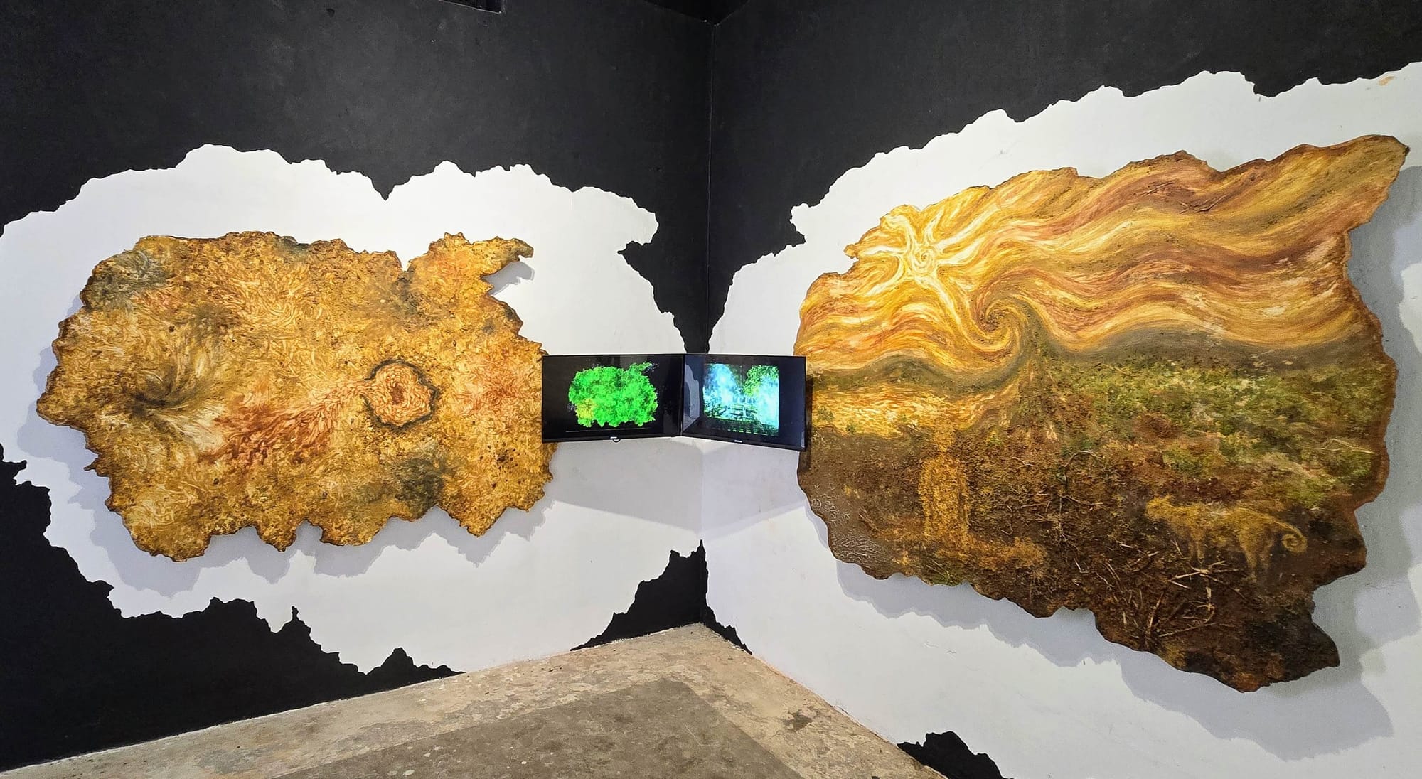 Known and Unknown is a two-channel video installation paired with paintings that explores the fundamental entanglement between the visible and invisible forces of nature. Soil itself acts as the shared ground, blurring boundaries between human and natural worlds.