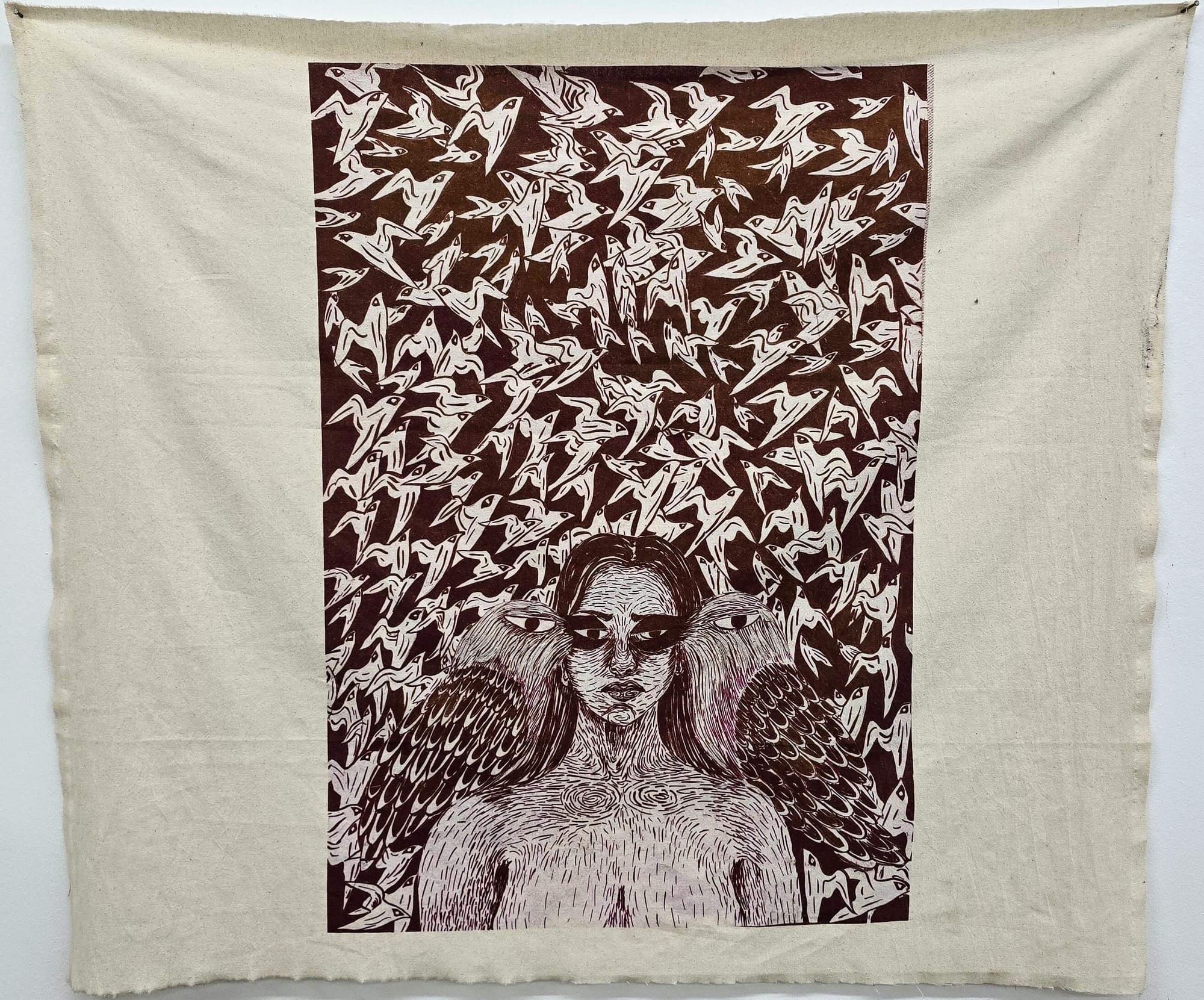 Devpriya is from Patna, Bihar. Her work centres on women's freedom. In her finely etched compositions, women are given wings — symbolic gestures of liberation. She draws a sharp parallel: birds deserve to fly, women deserve to be free. Both are often kept in cages — one made of iron, the other of social boundaries, morality, and walls.