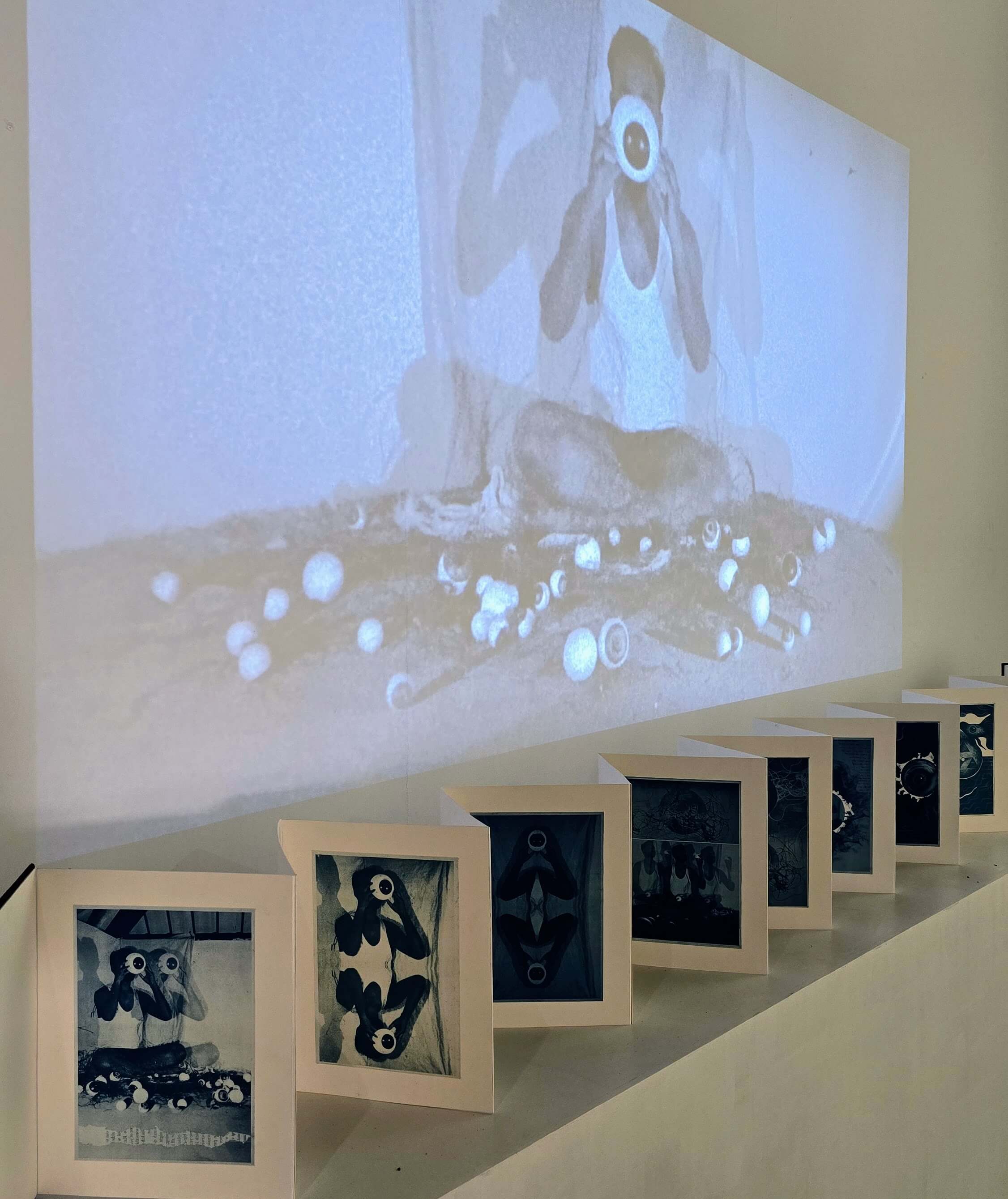 The action of embodying the eye to return the gaze becomes a recurring motif. It confronts viewers while revealing the artist's own vulnerabilities—exposing patterns of observation, judgement, and self-perception.