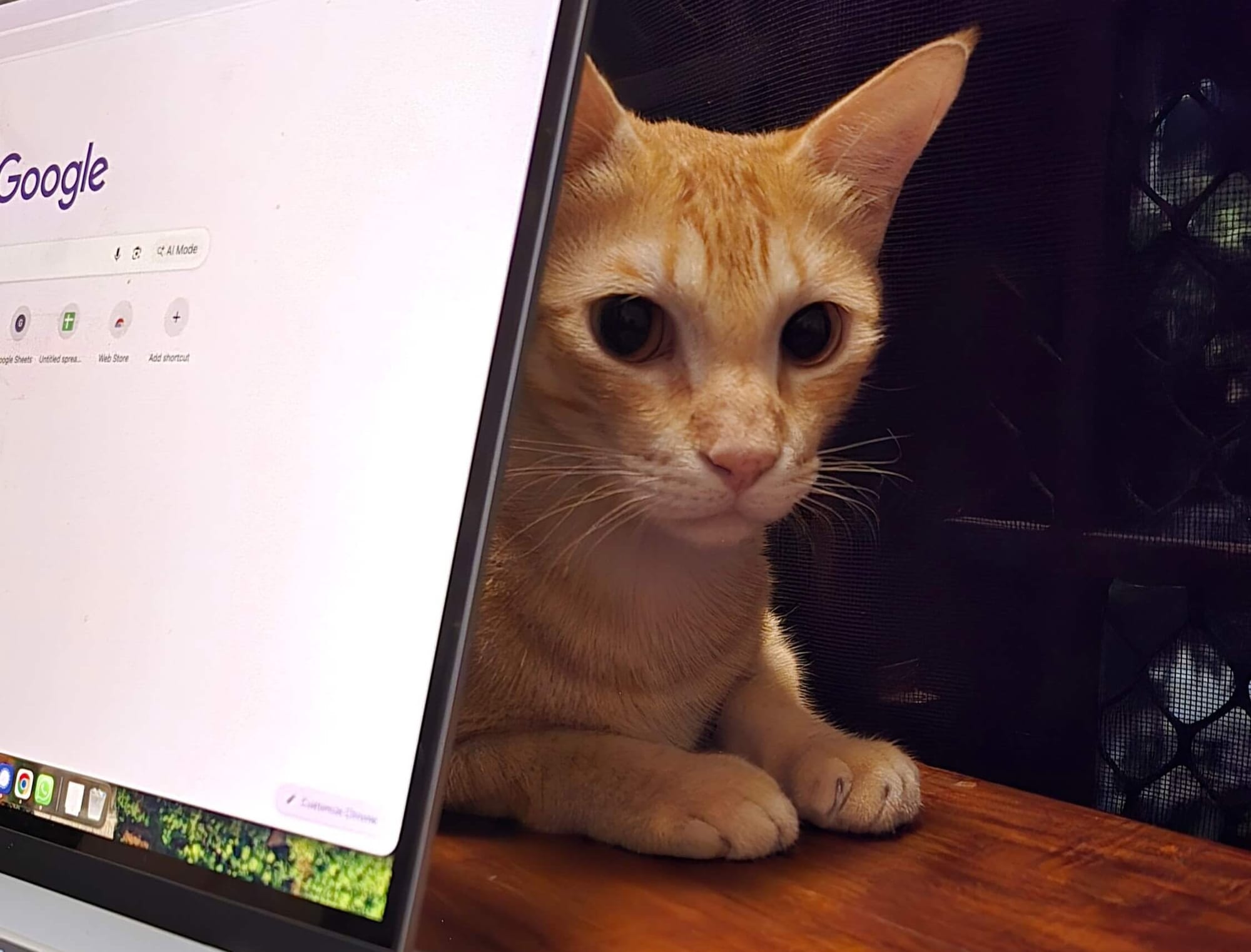 Bandit - jet-black fur, sharp yellow eyes, Editor-in-Mischief of Cats of Kochi - didn't even flinch. He was hunched over his desk, surrounded by museum pamphlets and empty tea cups arranged like modern art.